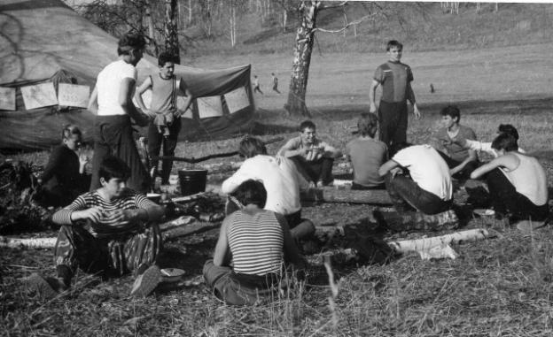 Мы складываем кучей свои вещи и бежим разбирать все что привезено и необходимо для размещения лагеря. Кто-то идет собирать сучья, кто-то ставит палатки, идет за водой, девчонки гремят ведрами, чистят картошку, уже чувствуется легкий запах дыма – начинают готовить ужин. Подтягивается народ, все знакомые, распределяемся по своим десяткам… скоро сэнсэй объявит построение.