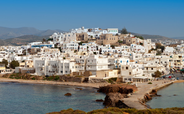 Диана Сеттерфилд, «Тринадцатая сказка»Каждый опытный путешественник по Кикладским островам знает, что самый впечатляющий и незабываемый вид на Хору Наксоса – с моря. Именно поэтому все пассажиры паромов, что прибывают ежедневно на остров, толпятся на верхних палубах с фотоаппаратами и видеокамерами в нетерпеливом ожидании задолго до того, как паром зайдет за волнорез в саму бухту и начнет швартоваться к пристани, вспенивая спокойную воду мощными винтами. А туристы, прибывшие на остров впервые, надолго останутся под впечатлением от красоты островной столицы и пейзажа, что открылся их взорам.