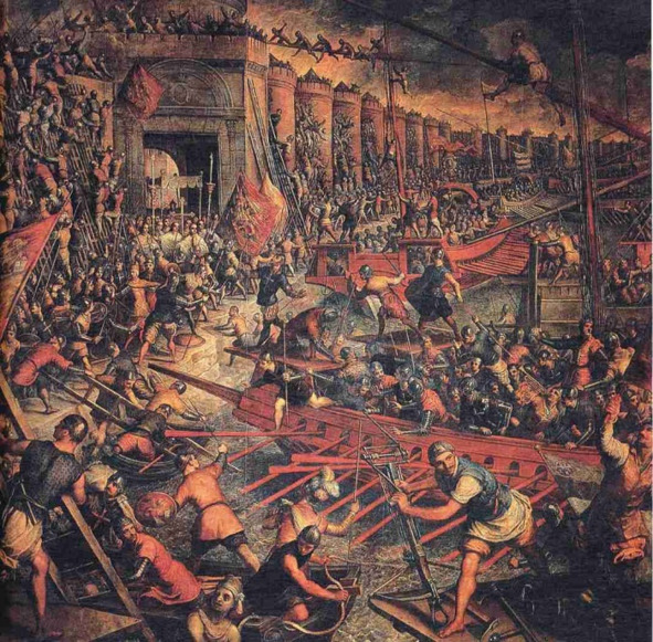 Штурм стен Константинополя крестоносцами в 1204 г. Работа художника Якопо Тинторетто. 1580 г.