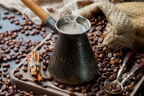 Небольшая стойка с дюжиной турок с деревянными ручками из оливы, отполированными до блеска многолетним использованием, глубокий поднос из нержавеющей стали с раскаленным песком, три пышных лимонных дерева с желтыми бугристыми плодами в больших глиняных горшках и старые, выцветшие от времени, фотографии на растрескавшейся от времени стене, рядом со стойкой, – вот и вся обстановка кофейни.