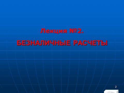 Тема №2 «БЕЗНАЛИЧНЫЕ РАСЧЕТЫ»