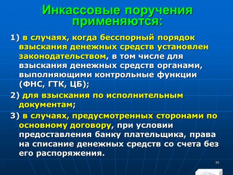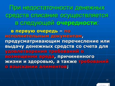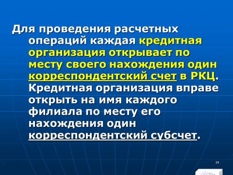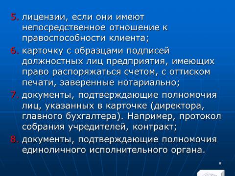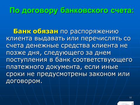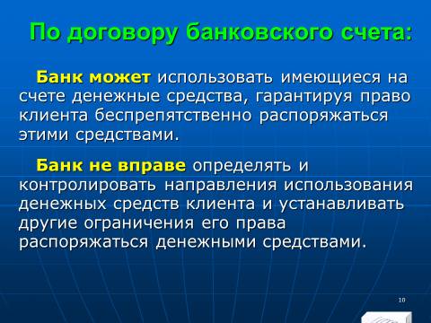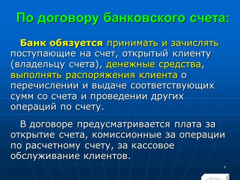 1. принимать на счет, открытый клиенту (владельцу счета), денежные средства, выполнять распоряжения клиента о перечислении и выдаче соответствующих сумм со счета