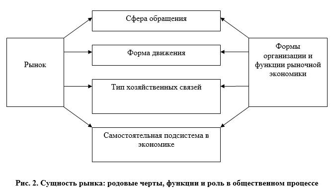 Рынок как экономическая категория есть совокупность конкретных экономических отношений и связей между покупателями, а также торговыми посредниками по поводу движения товаров и денег, отражающая экономические интересы субъектов рыночных отношений и обеспечивающая обмен продуктами труда. Суть рыночных отношений сводится к возмещению затрат производителей и торговцев, получению прибыли и удовлетворению платёжеспособности спроса покупателей (рис. 2).