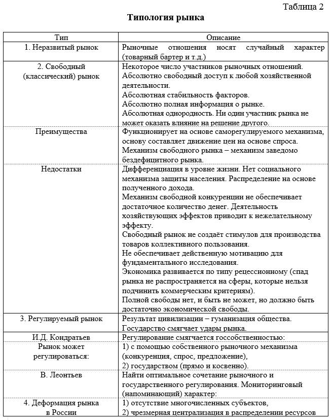 Существует несколько классификаций типов рынка одна из них приведена в таблице 2.