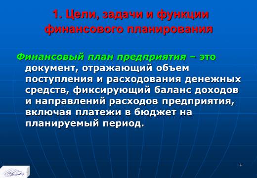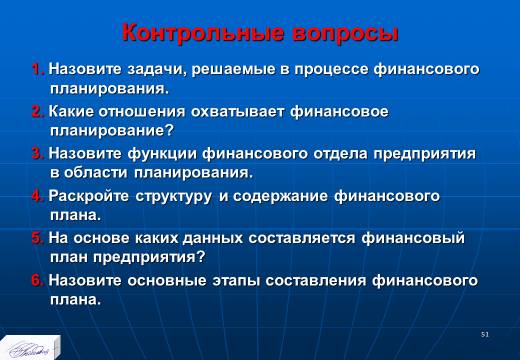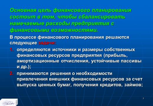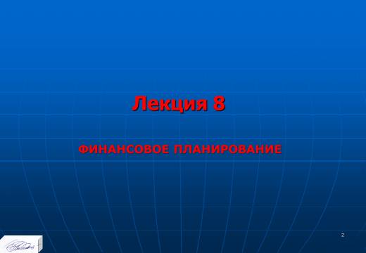 Тема № 8 «ФИНАНСОВОЕ ПЛАНИРОВАНИЕ»