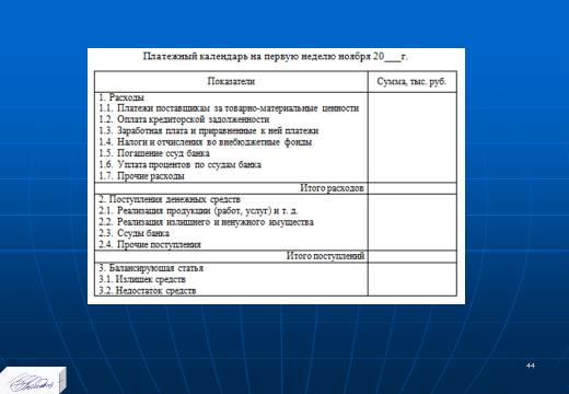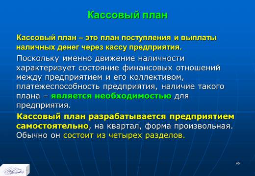 Вопрос 3. Кассовый план разрабатывается предприятием самостоятельно, на: