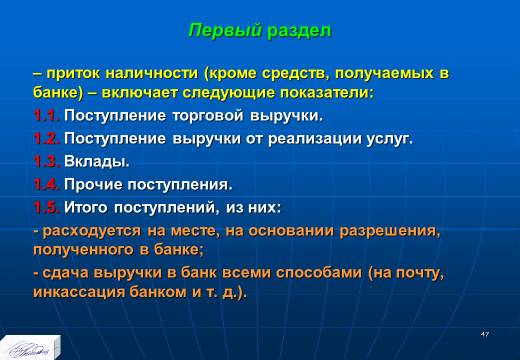 1. документ, отражающий объем поступления и расходования денежных средств;