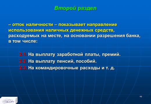 1. «Получение наличных денег в банке для заработной платы и других выплат»;