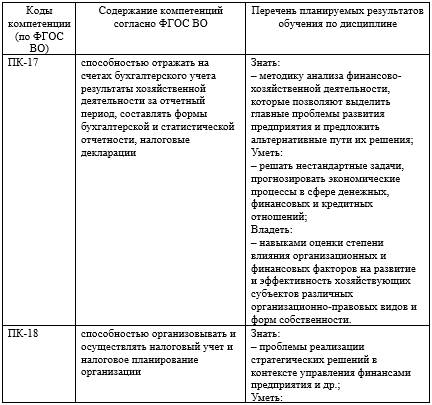 Изучение дисциплины «Анализ финансовой отчетности предприятия» направлено на формирование следующих компетенций: