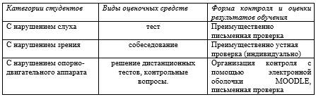 Для студентов с ограниченными возможностями здоровья предусмотрены следующие оценочные средства: