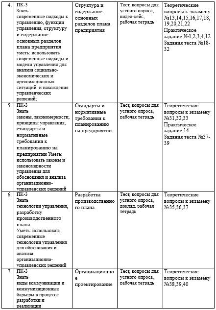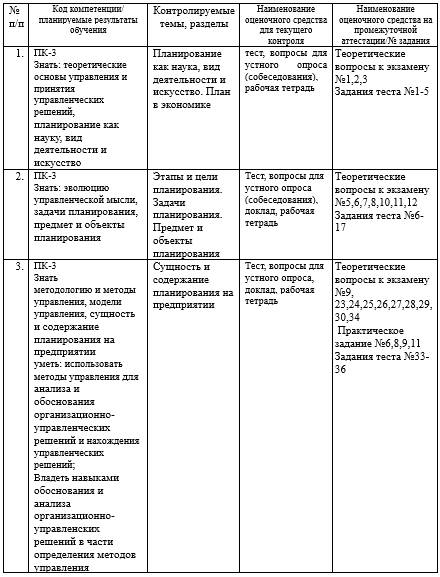 Фонд оценочных средств дисциплины «Планирование на предприятии (БУ)»
