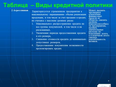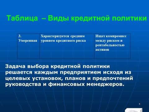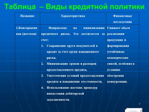 2. Формирование принципов кредитной политики по отношению к покупателям продукции.