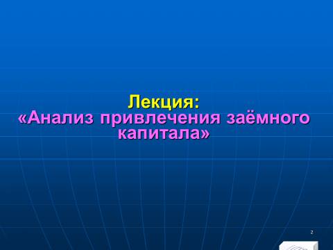 Лекция в слайдах «Анализ привлечения заёмного капитала»