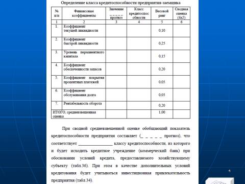 Рейтинговая оценка определения класса кредитоспособности предприятия, как потенциального заёмщика финансовых ресурсов