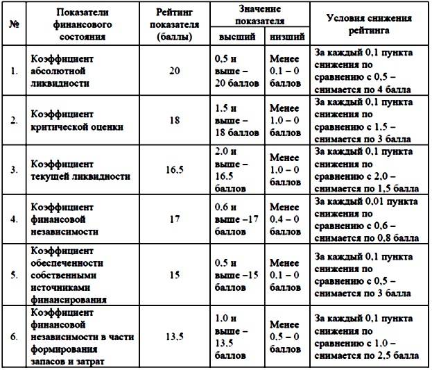 Исходя из приведённой таблицы, коэффициенты, включённые в рейтинговую оценку, рассчитываются следующим образом: