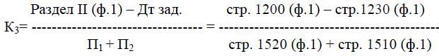 К3 показывает, какую часть текущих обязательств по кредитам и расчётам можно погасить, мобилизовав все оборотные средства.