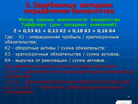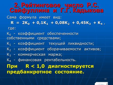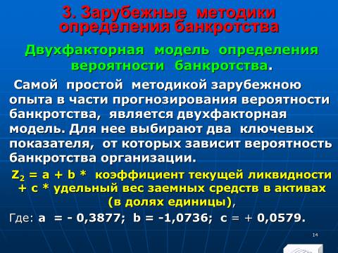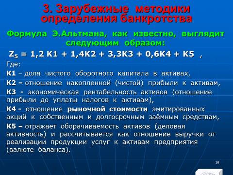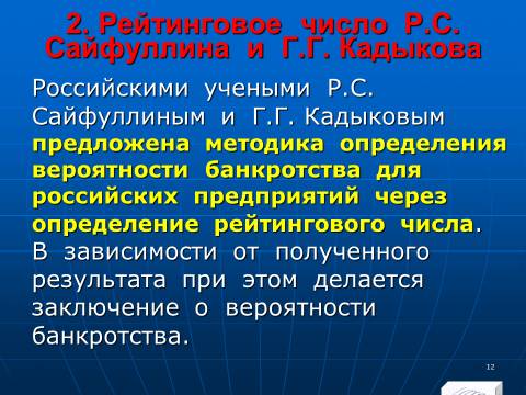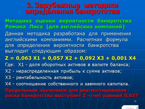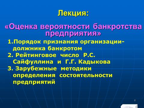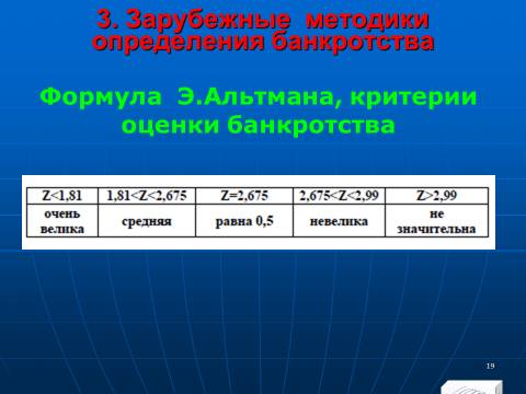 Лекция в слайдах «Оценка вероятности банкротства предприятия»