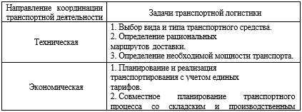 Задачи транспортной логистики предполагают несколько направлений координации транспортной деятельности в следующих областях:
