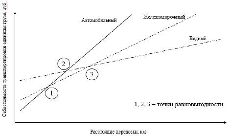 Рисунок 1.3 – Зависимость себестоимости перевозки от расстояния