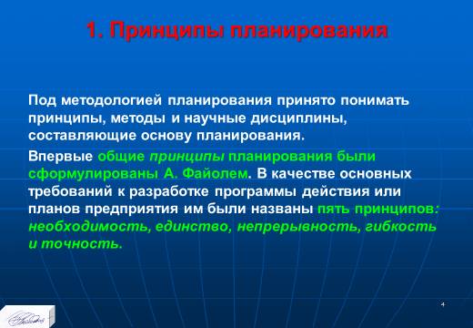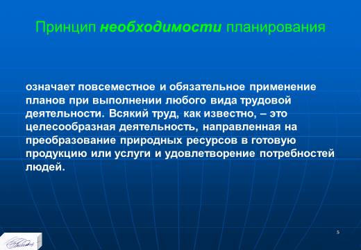 Вопрос 2. Принцип необходимости планирования: