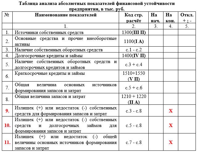 Финансовая устойчивость идеальная, если (п. 9.4; 10.4; 11.4)> 0;