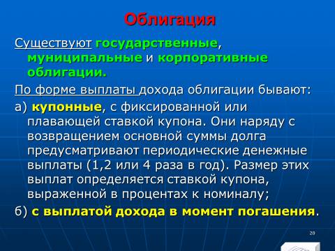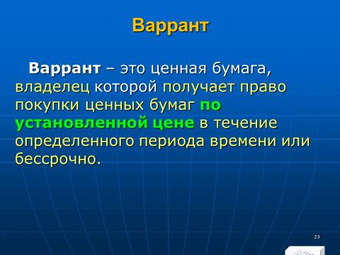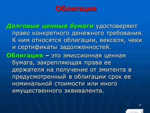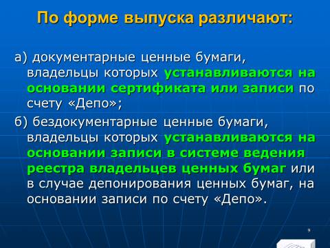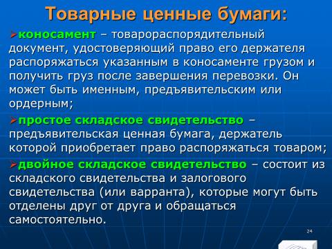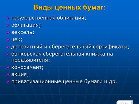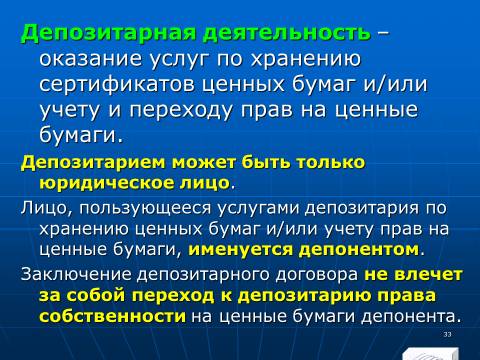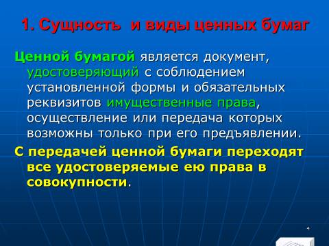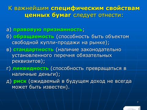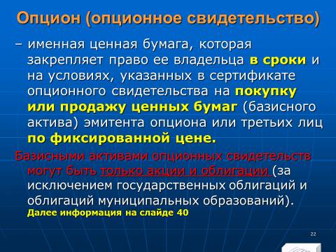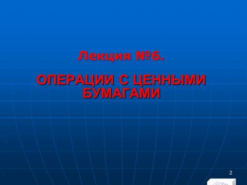 «Операции с ценными бумагами» лекция в слайдах с тестами