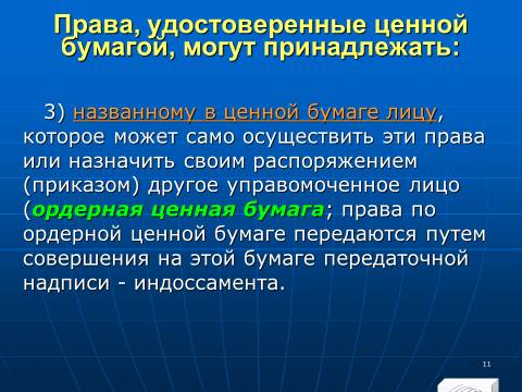 1. бланковый документ, удостоверяющий с соблюдением установленной формы и обязательных реквизитов финансовые права, осуществление или передача которых возможны только при его предъявлении