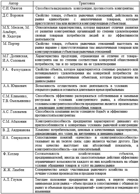 Таблица 1.1 – Определения термина «конкурентоспособность».