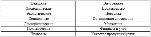 К внешней среде относится макросреда и непосредственное окружение организации, имеющее направленное воздействие и контакты с системой. Внутренняя среда – это совокупность ситуационных факторов внутри организации, на которые оказывают воздействие управленческие решения. Факторы, оказывающие влияние на создание конкурентных преимуществ компаний представлены в таблице 1.2.