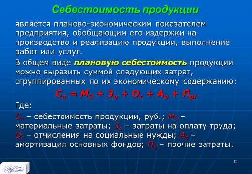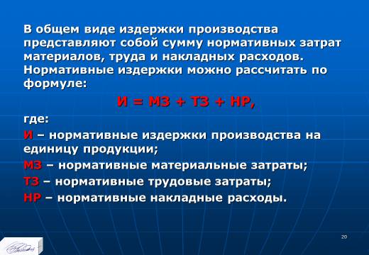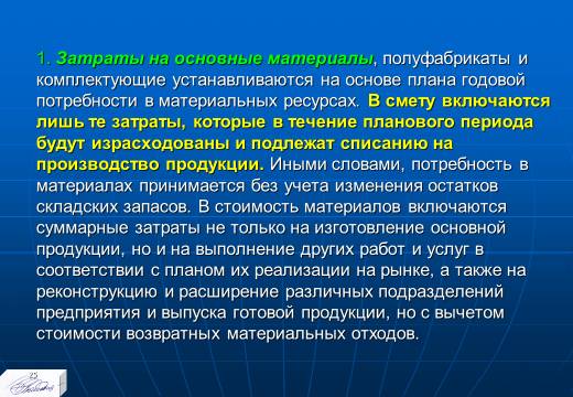 1. в материально-вещественной форме издержки предприятия на производство и реализацию единицы или объема продукции в действующих экономических условиях;