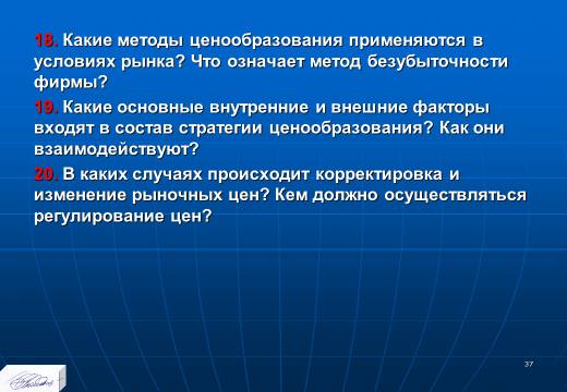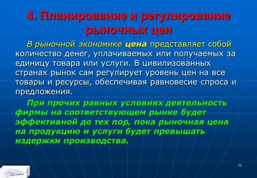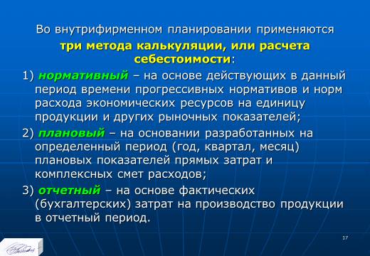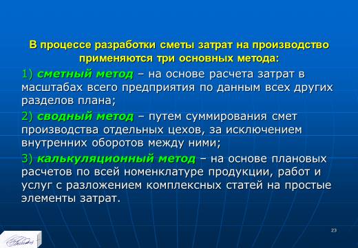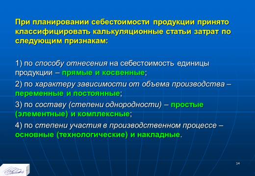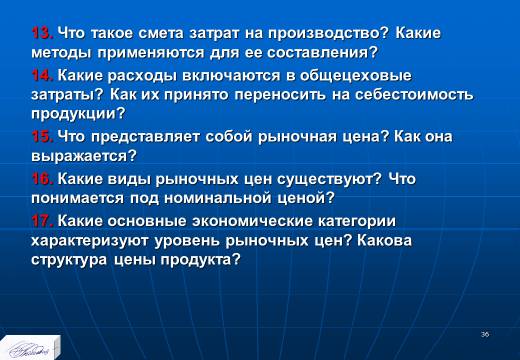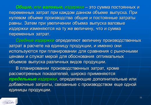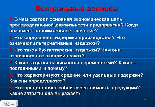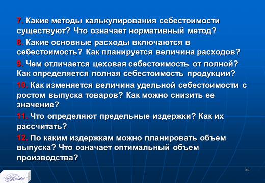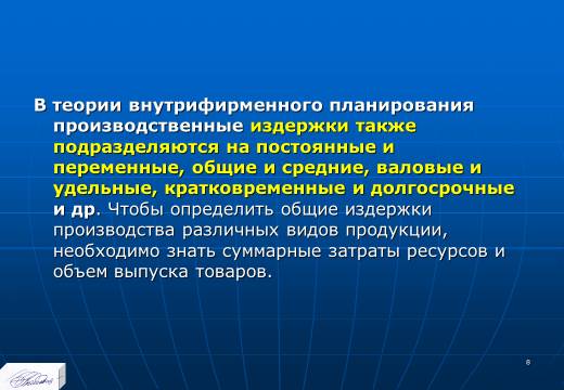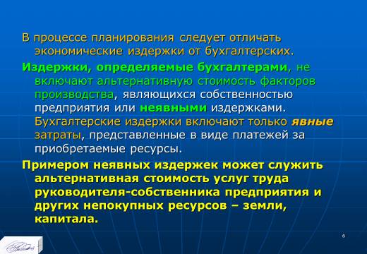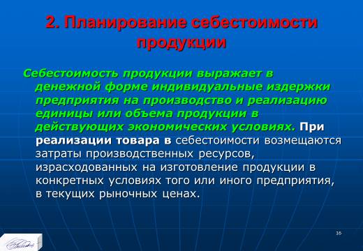 «Планирование издержек и результатов производства» лекция в слайдах с тестами
