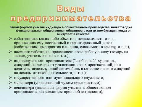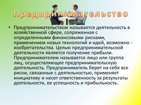 Предпринимательская деятельность и предпринимательство. Лекция в слайдах, тестах и ответах