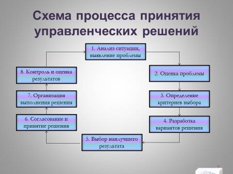 Процесс принятия и реализации управленческих решений. Лекция в слайдах, тестах и ответах