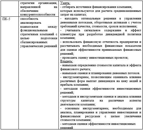 – освоение существующих методик анализа стоимости и структуры капитала;