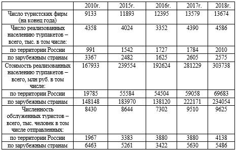 Таблица 1.1 – Основные показатели туристских фирм