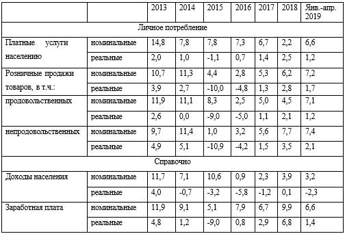 Таблица 1.3 – Динамика личного потребления в России в годовом выражении, %