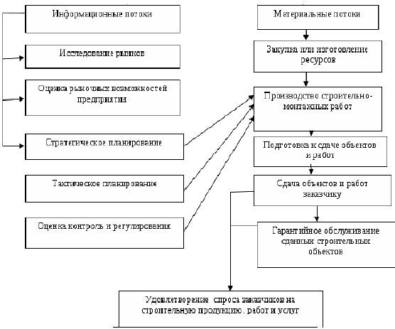 Модель маркетинга в строительной отрасли включает управление информационными потоками, планирование, контроль и управление производственными процессами (рисунок 1.4).