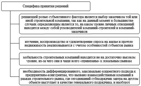 Рисунок 1.5 – Специфика принятия управленческих и маркетинговых решений в строительной отрасли
