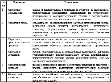 Таблица 1.2 – Структурные элементы внешнего маркетинга