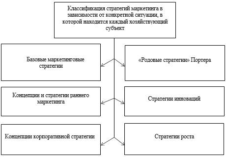 Рисунок 1.1 – Классификация стратегий маркетинга в зависимости от конкретной ситуации, в которой находится каждый хозяйствующий субъект