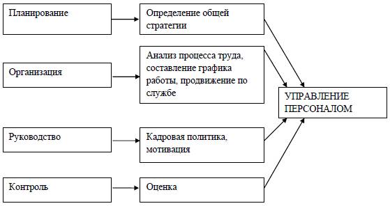 Система управления персоналом включает в себя следующие элементы: кадровое планирование, отбор, подбор, найм, подготовка персонала, адаптация, мотивирование, а также нормирование трудового дня.