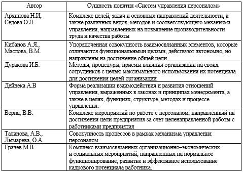 Рассмотрим определение сущности системы управления персоналом с позиций различных авторов (таблица 1.1).