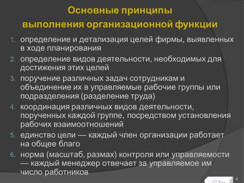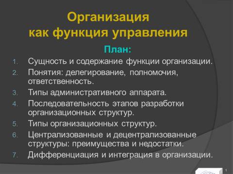 Организация как функция управления. Лекция в слайдах, тестах и ответах