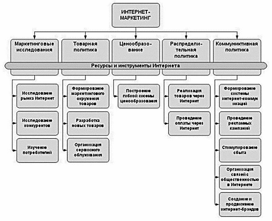 С увеличением количества пользователей Интернета и с активным развитием интернет торговли, данное направление маркетинга приобретает все более информационный характер. На сегодняшний день еще не появилось устоявшихся механизмов и определений интернет-маркетинга. Часть исследователей полагает, что его главная цель состоит в изучении целевой аудитории, успешному привлечению вниманию к продукции фирмы и конвертации их в покупателей ваших товаров и услуг. Другая часть исследователей склонна считать, что маркетинг является просто совокупностью аспектов различных направлений маркетинга, локализованных для действий в сети. Так или иначе, интернет- маркетинг состоит из совокупности мер, таких как: исследование, продвижение, рыночная реализация продукции, а также формирование и удержание клиентской лояльности к бренду, которые и формируют успешную стратегию маркетинга в сети Интернет.