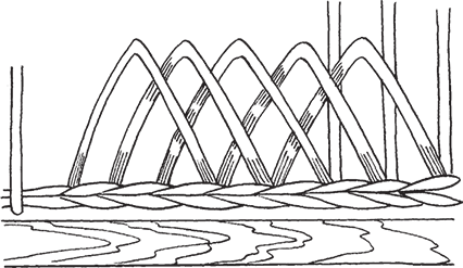 ♦ 1-м стоячком обходится 4-й, а затем выводится наружу. Так образуется первая тройка прутьев;