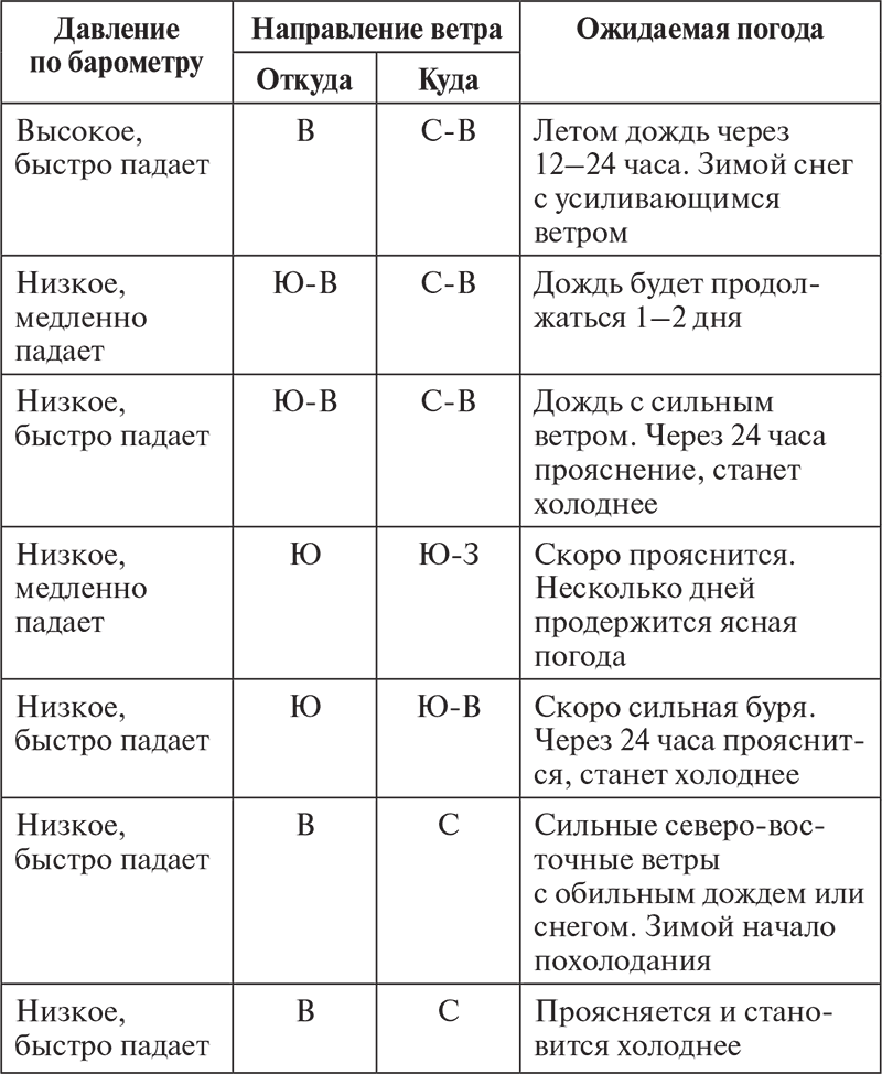 Многие работы в саду, на дачном и приусадебном участках зависят от изменений погоды. Если владелец наблюдателен и не пренебрегает народными приметами, он всегда будет на шаг опережать изменение погодных условий. Табл. 1 поможет правильно интерпретировать показания барометра.