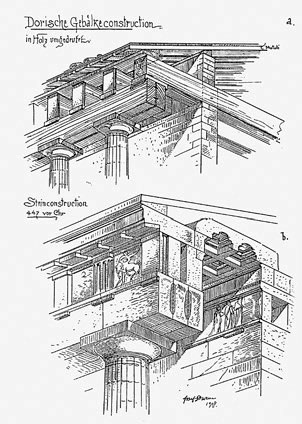 Конструкции Парфенона и вероятный деревянный прототип в интерпретации немецкого архитектора, строителя и преподавателя Йозефа Дурма (1837–1919).