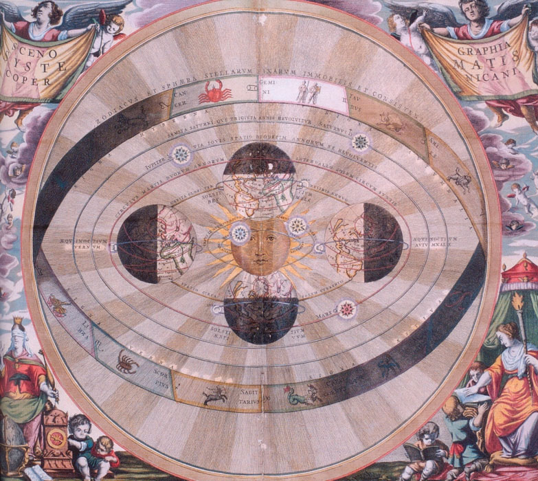 Рис. 2.10. Сценография системы Коперника. Офорт с ручной раскраской. 1661 г.[42]