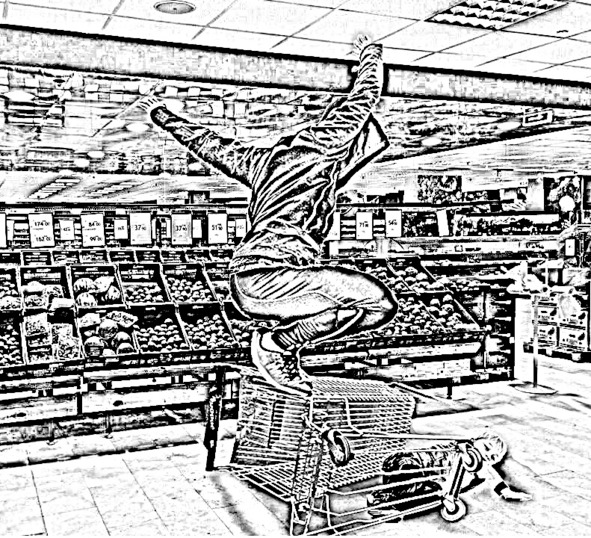 Никита лежал на полу, сверху на нем находилась металлическая тележка, в которую Юля накануне складывала свои покупки в овощном отделе, теперь они были разбросаны по всему кафельному полу, тележка была опрокинута на бок, а под ней лежал Никита, свернувшись в позу эмбриона, закрыв голову руками он истошно кричал. На самой тележке удерживая равновесие находился парень в спортивном костюме и молча, не издавая ни звука, яростно молотил кулаками сверху вниз по прутьям тележки сгибая их с каждым ударом все сильнее. Худощавый парень находился к Юле спиной, плюс у него на голове был накинут капюшон, из-за чего его обзор вокруг был ограничен, поэтому он не заметил Юлю, продолжая дубасить решётку торговой тележки.