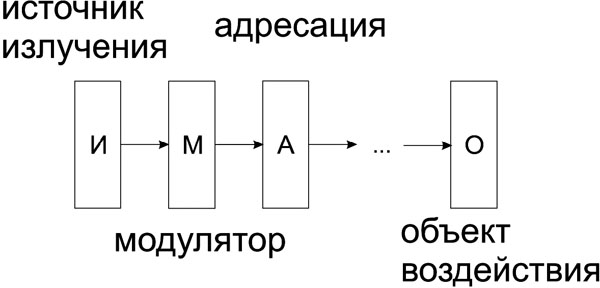 Поскольку корни операторных взаимодействий находятся в магии, нужно дать некую интерпретацию самого феномена магии с позиции современной психотроники. Как было показано в ряде работ [24; 25], как приборы, так и операторы демонстрируют сходные эффекты. Это касается интенсивности, возможности их модуляции и степени воздействия на материальные процессы. Поэтому мы исходим из психотронной модели, согласно которой приборные и операторные явления имеют сходный механизм действия. Как показано на рис. 2, модель психотронных явлений включает в себя источник излучения, модулятор и систему адресации. Все эти элементы присутствуют в приборных экспериментах – так, в одном из экспериментов [25] светодиодный генератор выступал в качестве источника излучения, пенициллиновые матрицы модулировали излучение и фотографические отображения создавали систему адресации с объектами-зернами. Сознание и подсознание оператора могут перенимать роли модулятора и адресатора воздействия. Ставилось множество экспериментов [24; 25; 26; 27; 28; 29], которые подтверждают эту гипотезу. Предполагается, что электрическое и магнитное поля Земли образуют ортогональную излучательную систему, для которой характерны эффекты «высокопроникающего» излучения. При определенных условиях возможно создание «естественного генератора», где оператор выполняет роль «информационного модулятора». Также и сам оператор может выступать в качестве такого источника. Таким образом, оператор в состоянии частично или полностью заполнять все блоки на рис. 2 только за счет своих способностей. Несмотря на гипотетический характер, эта терминология позволяет рационально объяснить сходные магические техники и ритуалы различных культур и их упорное многовековое существование вопреки преследованиям. Это также позволяет понять причины начавшегося процесса слияния операторных и психотронных техник [24; 26; 30], что представляет собой дополнительный аргумент для включения истории магии в книгу по психотронике.